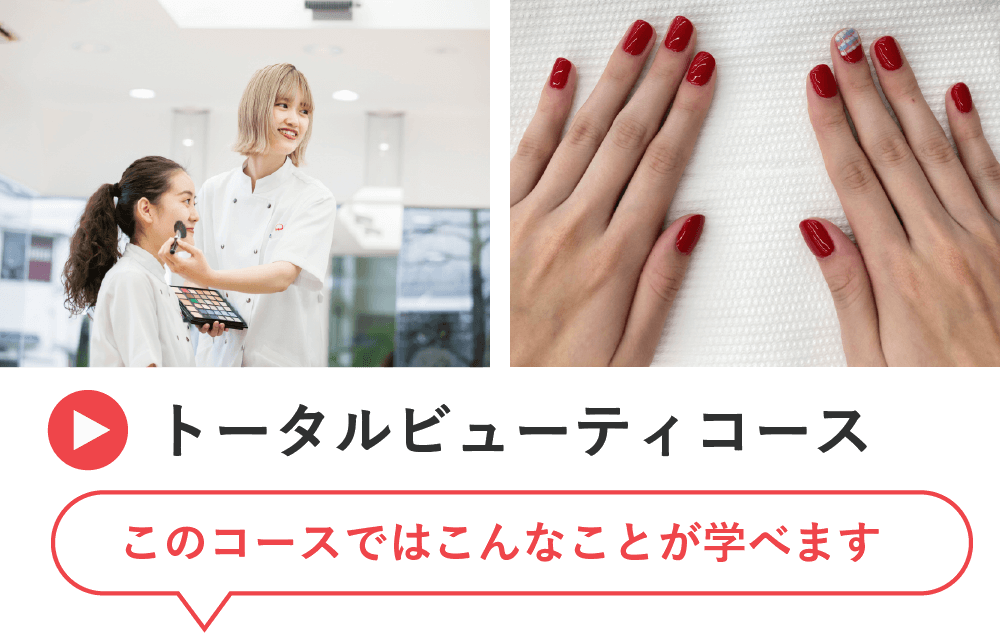 ヘアメイクやネイルを学び、美容の知識を拡げます。トータルで勉強したい方におすすめです。