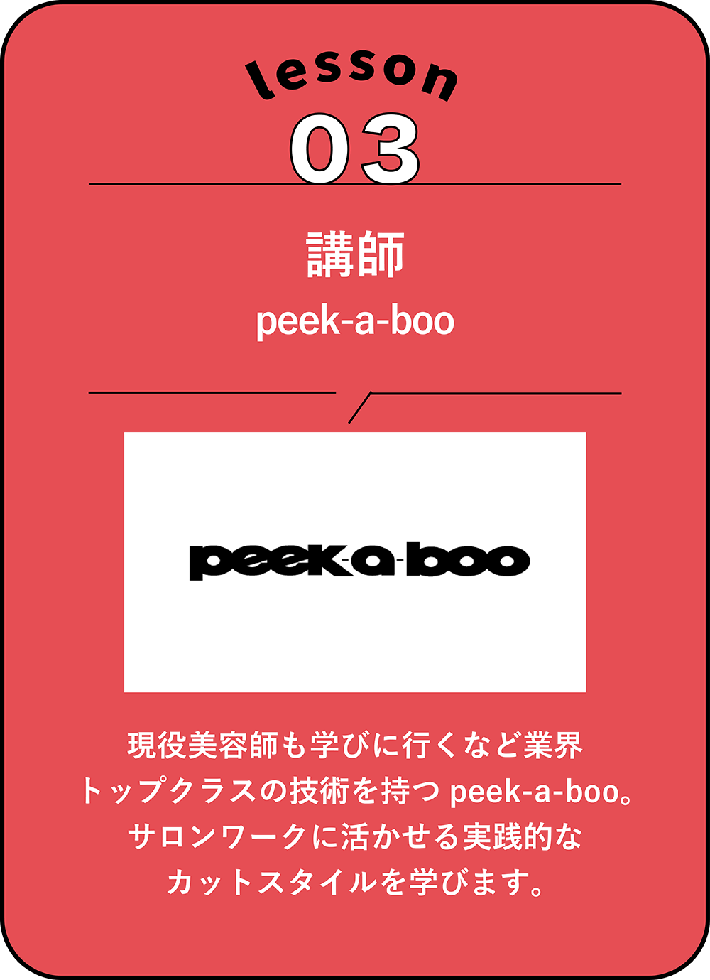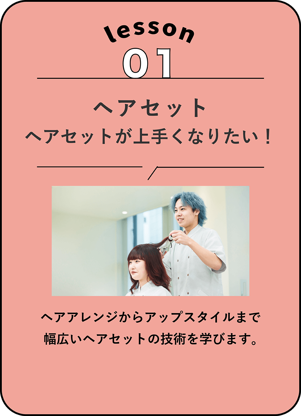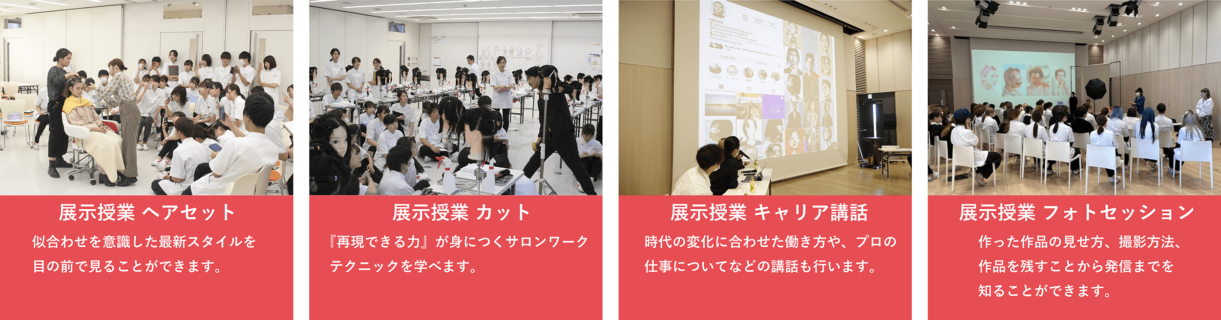 カット/シャンプー/ヘアカラーリング/パーマ/マッサージ/ヘアセット/メイクアップ/ネイル/ヘアケアマイスター/毛髪科学/香粧品実験/色彩学/デッサン/造形学/ファッション/広告宣伝/店舗設計/ビジネスマインド® /国家試験課題/実務実習