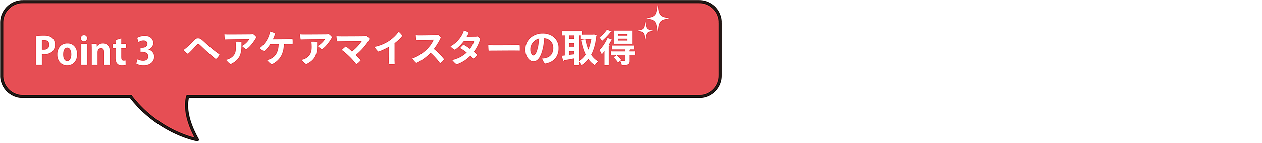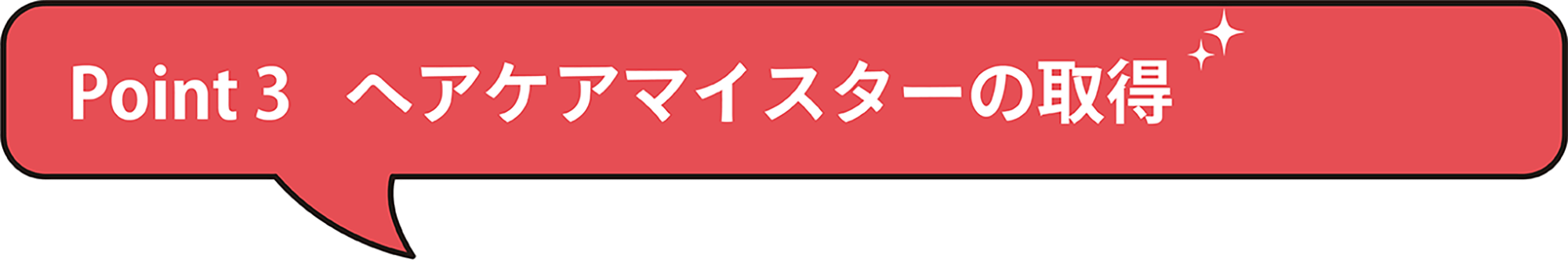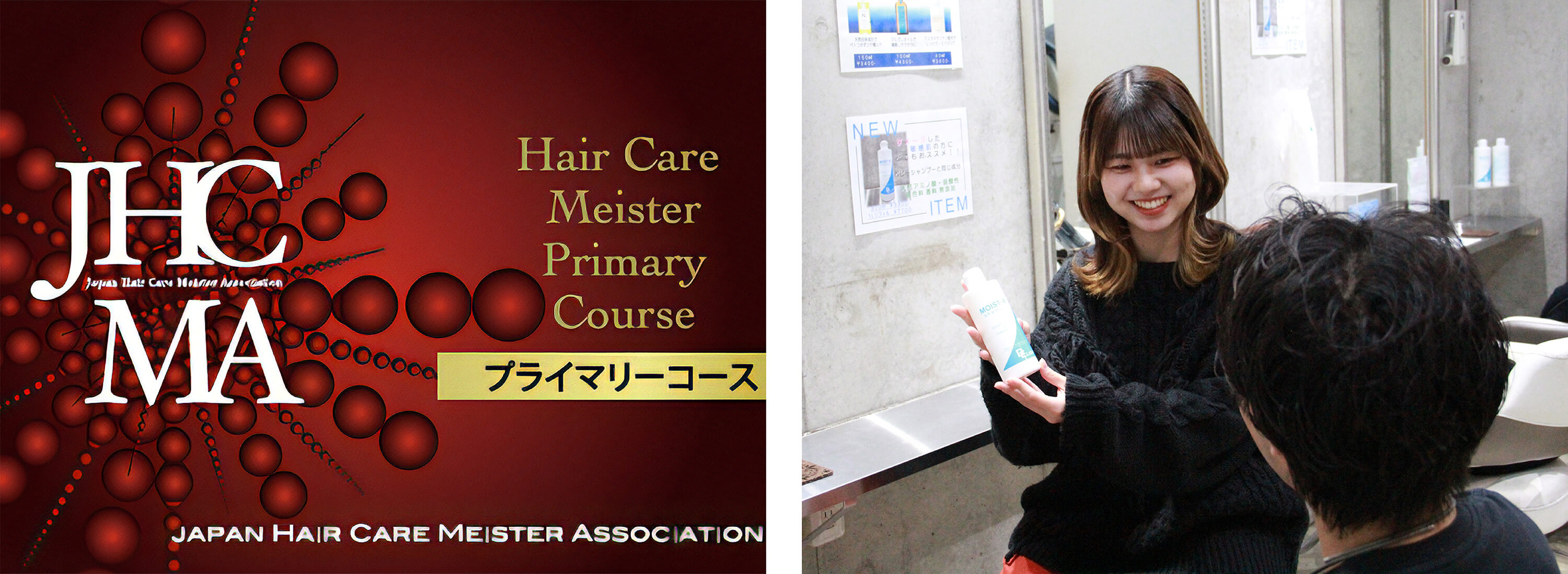 美容業界において名誉と権威ある称号「ヘアケアマイスター」の取得を目指します。毛髪の構造やヘアケア剤について学習するため、就職後お客様の毛髪の状態を見極め、悩みについてアドバイスをすることができます。
