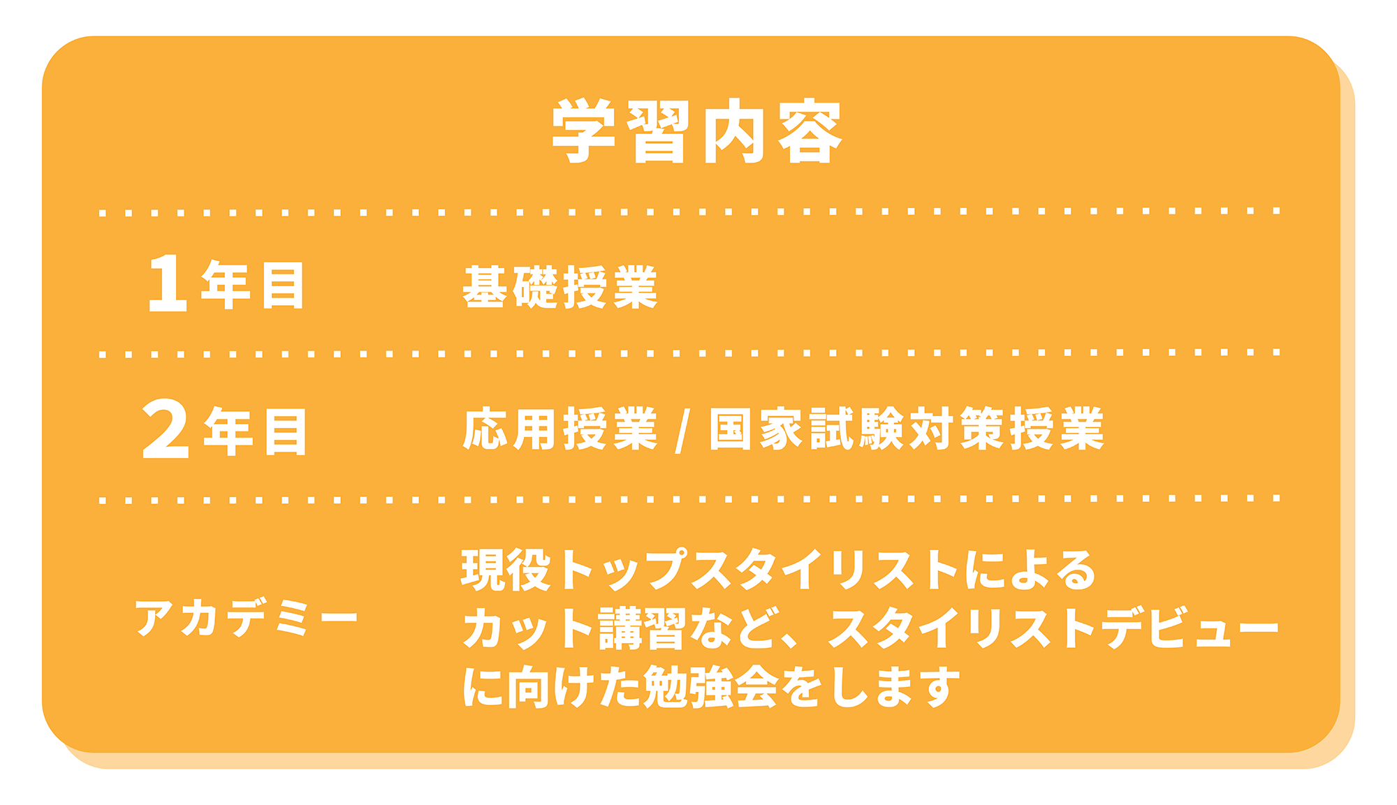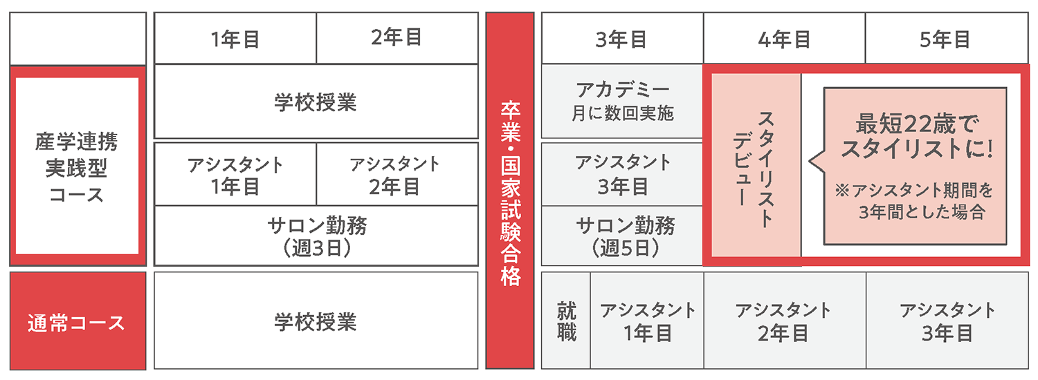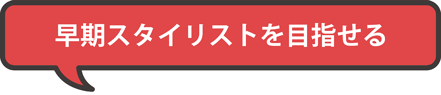 また、アシスタント業務を早い段階からスタートするため、早期スタイリストデビューを実現できます。