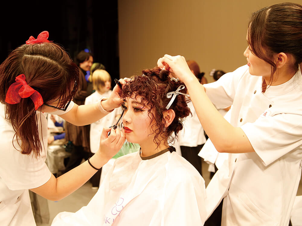 週3日のサロンワークでは、接客や技術をリアルな環境で学ぶことができます。また、学生が通うサロンは本校の産学連携実践型コースの内容を理解していただいているサロンになる為、スタッフの人たちも技術を丁寧に教えてくれます。