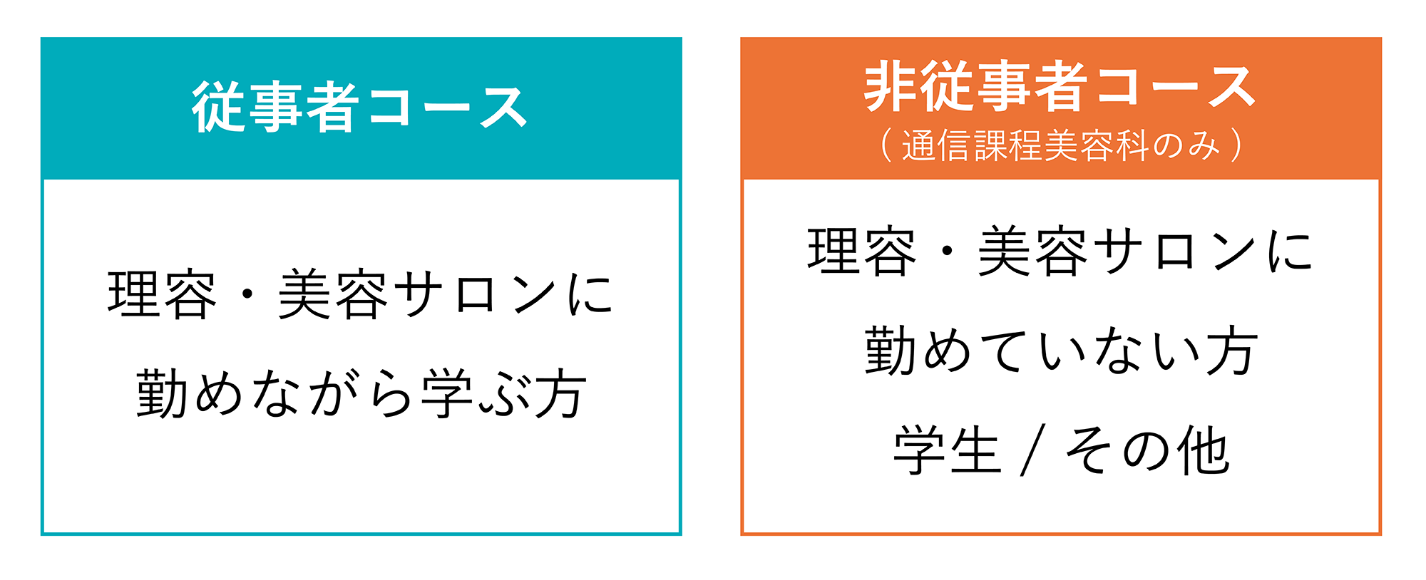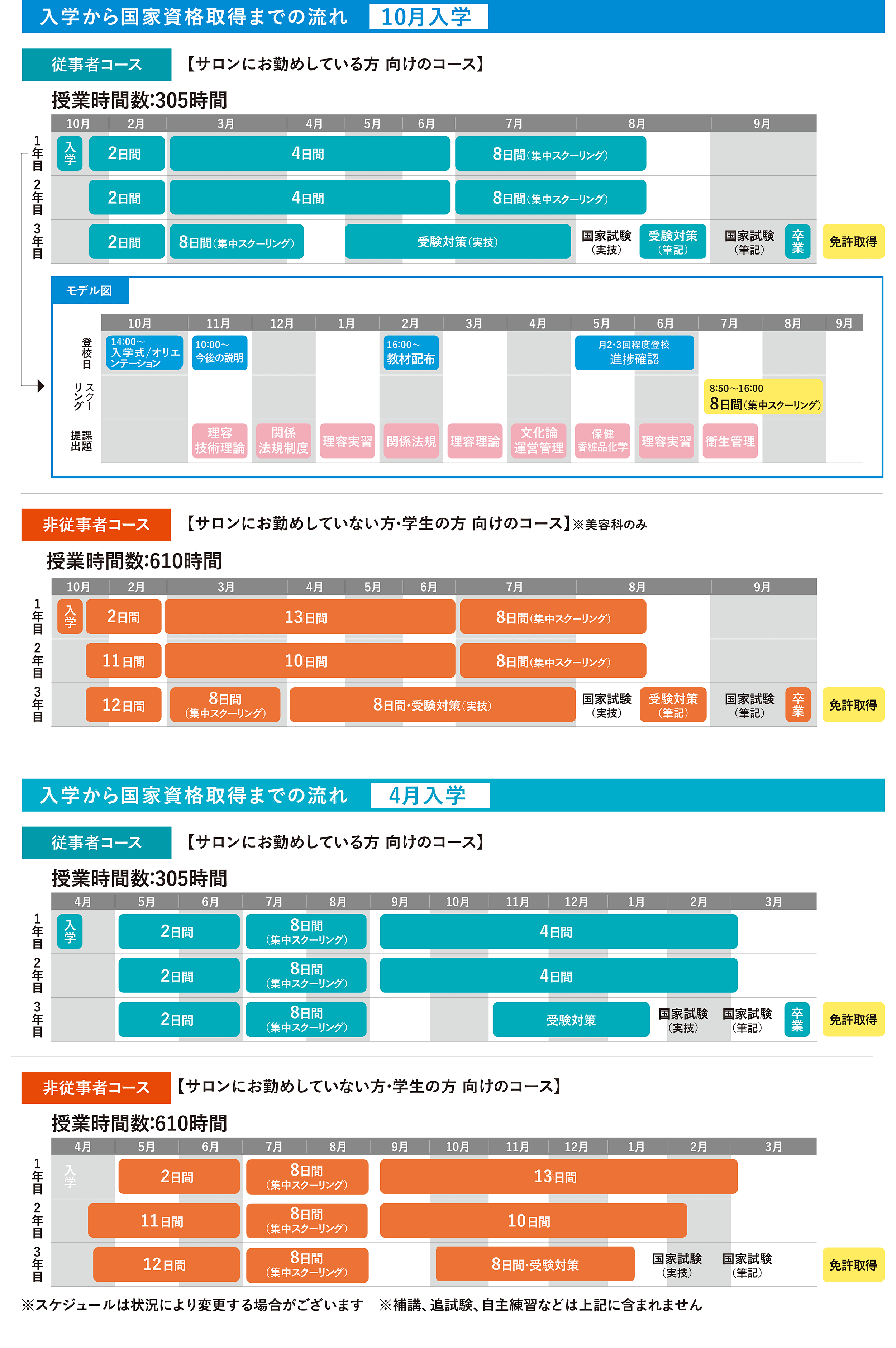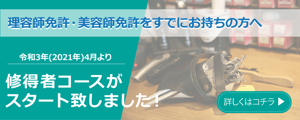 “従事者コ ース時間数300時間” (サロンに勤めながら学ぶ方向け)・“非従事者コ ース時関数600時間” (サロンに勤務しない方・学生の方向け)。