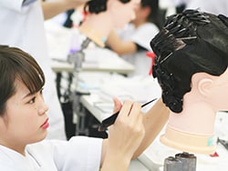 通信課程では国家資格取得を目的としている為、実技の授業はスクーリングの期間の中で行ないます。美容は「カット」・「ワインディング」・「オールウェーブセッティング」、理容は「カット」・「シェービング」の技術を習得します。