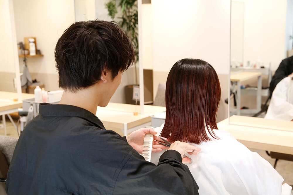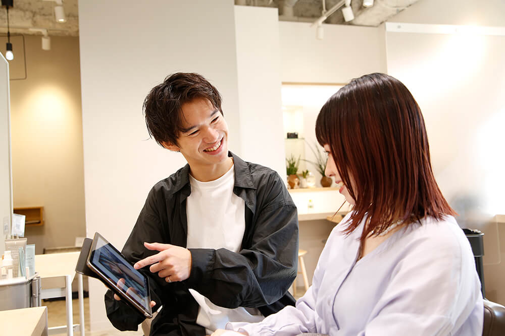 最近の美容業界では「練習しないやつはありえない!」みたいな風土はなくなってきています。ここのサロンでは練習は自主制にしています。後輩には「スタイリストになったら自分の技術で食べていくんだな」「もっと練習しないとお客さんに失礼じゃない?」と言うこともあります。正直言われたときは分からないかもしれない。でも、実際に入客したときに技術不足だと気付くんです。自分が自分の技術にいくら払えるかを常に考えながら、お客様にその価値にあった技術を提供できているのか意識することが大切ですね。
