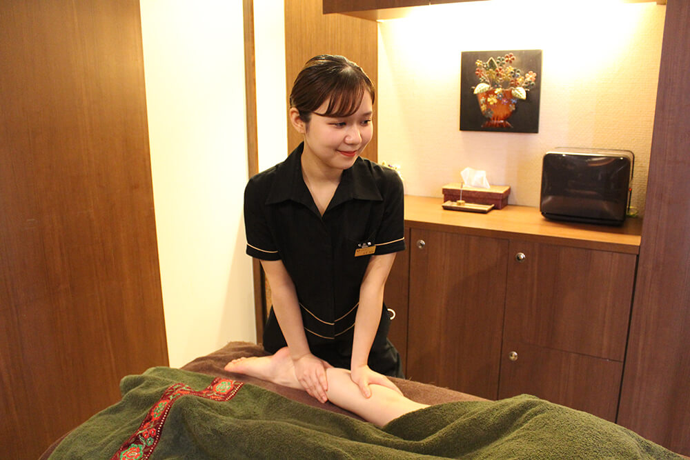 入社して3年経ち、今年からリーダーになりました。後輩指導では一人ひとりにあった伝え方が難しくて苦労していますが、先輩と後輩の架け橋になれるように広い視野を持ちながらチームをサポートしています。接客面ではお客様に来てよかったと思っていただくために、施術中の1~2時間の中で距離を縮められるように努力しています。美容やライフスタイルのお話などもお聞きして、施術を通して癒しの提供や深い繋がりを築けるように心がけています。