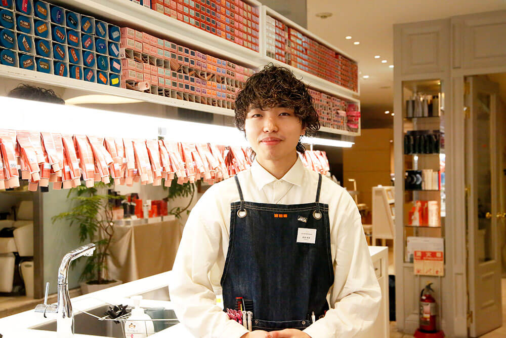 日本で初めて「ヘアカラーリスト」を作った会社がkakimoto armsで、ヘアカラーの技術をより専門的に学べると思って選びました。ヘアカラーリストは海外では広く認知されている職業で、kakimoto armsでは現在約100名のヘアカラーリストが在籍しています。全店でカラー剤が1000色以上あるのも魅力のひとつです。