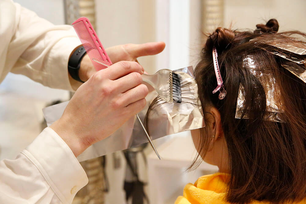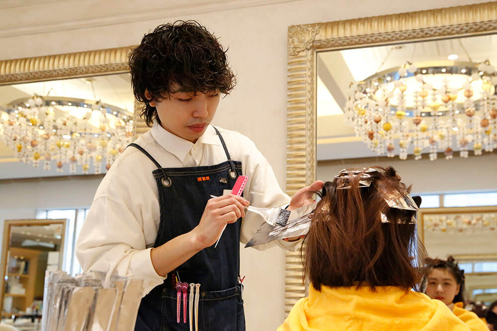 最近は何かの技術に特化した美容師が多いため、ヘアカラーの専門的な知識や技術を身につけたくてヘアカラーリストを目指しました。普段はお客様の髪を切らず、ヘアカラーに特化した専任のスペシャリストとして働いています。ヘアカラーリストがお客様のパーソナルカラーを見極め、スタイリストと一緒にお客様の骨格や髪の長さ・髪質を見て、どこにハイライトをいれるか、どのようなカラー剤を使うかなど話し合って施術をしています。