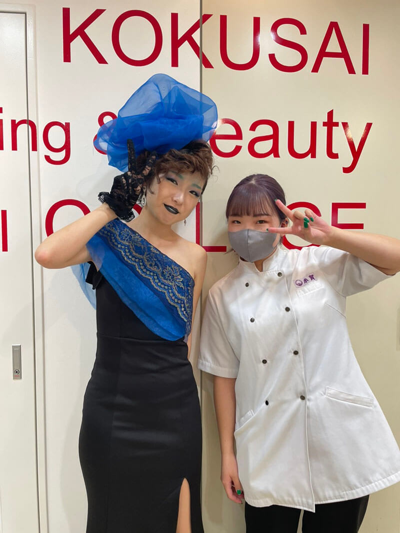 私は元々ヘアメイクアップアーティストを目指していて、メイクについて学べる学校を探していました。他の専門学校は美容師を目指すためのコースが多いなか、KOKUSAIのビューティアーティスト科のカリキュラムはヘアアレンジやメイク・ネイルを満遍なく学べるため、将来の幅も広がると思って進学を決めました。 |