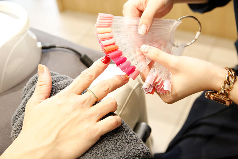 小学生の頃、母にマニキュアで爪を可愛くしてもらっていたので、元々ネイルに興味がありました。次第に母や友人がネイルをして喜んでいる姿を見て、私もやってもらう側ではなく施術する側になりたいと思いネイリストを目指しました。