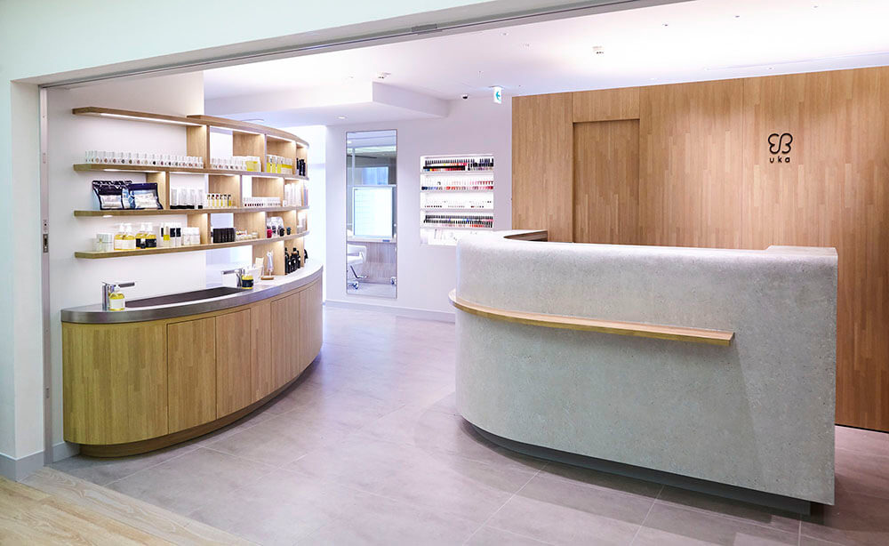 ukaはトータルビューティサロンでもありますし、ネイルオイルやスカルプブラシケンザンが有名でブランド力もあります。そのため、自社の製品を実際に使用してお客様におすすめできるところが他のサロンにはない強みだと思っています。 |