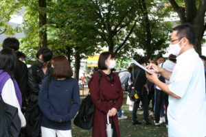しかし規模を縮小した中での実施でしたが各学科で共通の動画(荒川氾濫を想定したもの)を視聴し、災害に対する危機感を高め実際に近隣までの避難ルートの確認を行いました。