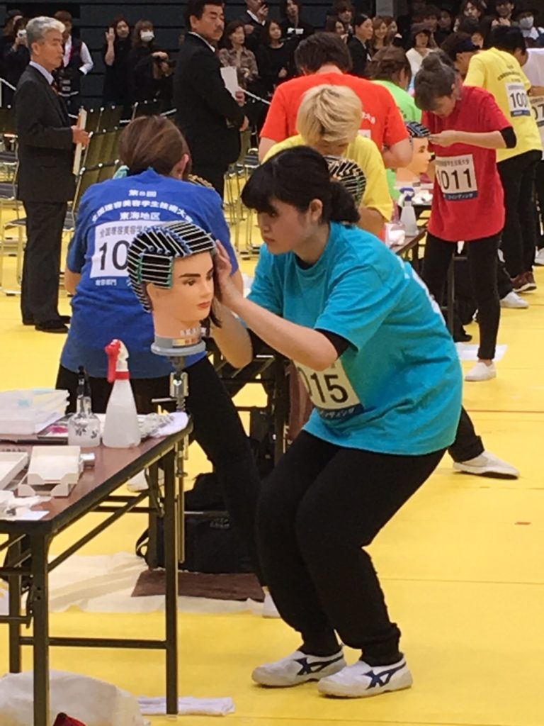 先日、第8回全国理容美容学生技術大会の全国大会が、富山県にある富山市総合体育館で行なわれました。美容科と理容科の学生が金賞を目指して参加いたしました。地区予選を勝ちあがった強者揃いの中、理容部門クラシカルバックバリエーションセット種目で間仁田 淳さんが優秀賞、理容部門ワインディング種目では石井 遥さんが見事金賞をとり非常に優秀な成績を収めました。今回学生それぞれ結果は違ましたが、どの学生も地区の代表として自分の力を精一杯に伸ばしている姿がありました。その真剣に技術と向き合う時間が力に変わったことを、学生技術を行なう姿や作品から感じることができました。みなさん地区予選、全国大会と長い期間大変お疲れ様でした。また、ここまで様々な面からサポートしていただいた講師の先生方、保護者の皆様本当にありがとうございました。