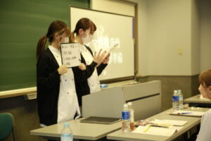 各学科ではそれぞれの業界で求められる人材像を知り、友達同士を動画でプレゼンするためにペアになって話し合い、交流を深めました。