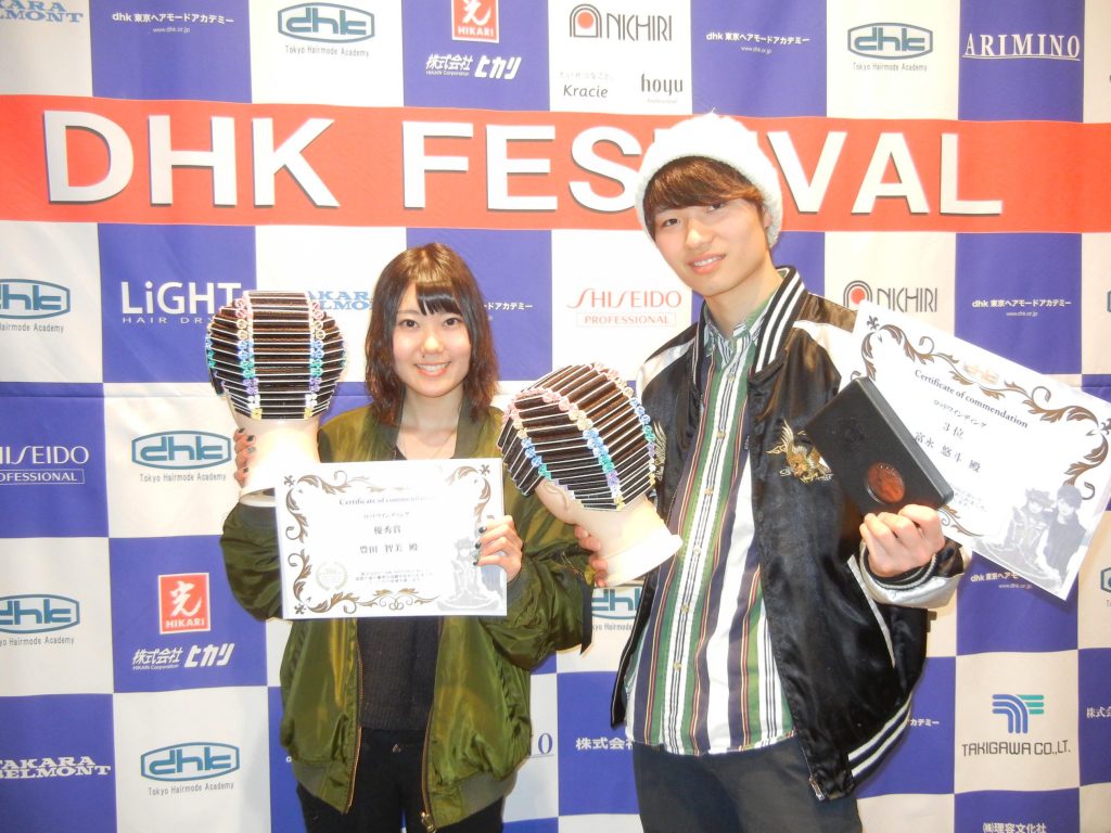 3/13 (月)高田馬場アリミノホールで行なわれたDHKコンテストにKOKUSAI生が参加致しました。カットやワインディングなど全10部門で行なわれた競技の中で、フリーデザインレディス部門で理容科 近藤美綺さん(H28年度卒業生)が見事優勝し、その他ワインディング部門でも3名の学生が優秀な成績をおさめました。3月は学内の行事も多く練習時間が限られていましたが、一人ひとりの努力がこのような成果に繋がったのでしょう。また、参加したKOKUSAI生は「悔しかったけど、他の参加者の技術や表現が非常に勉強になった」と話していました。このコンテストを通して自身の感性を高める良い機会になったことでしょう。KOKUSAIではこのように感性を高める機会を作れるようさまざまなコンテストへ参加しております。参加されたみなさんお疲れ様でした!