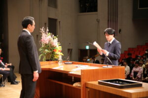 式は学事報告から始まりその後、卒業証書授与、各種賞状授与を行いました。