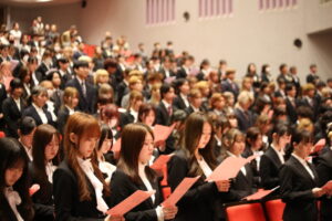 各学科の新入生たちがこれからのKOKUSAIでの学生生活に不安と期待を膨らませ式に参加している姿が印象的でした。