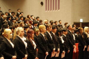 各学科の新入生たちがこれからのKOKUSAIでの学生生活に不安と期待を膨らませ式に参加している姿が印象的でした。