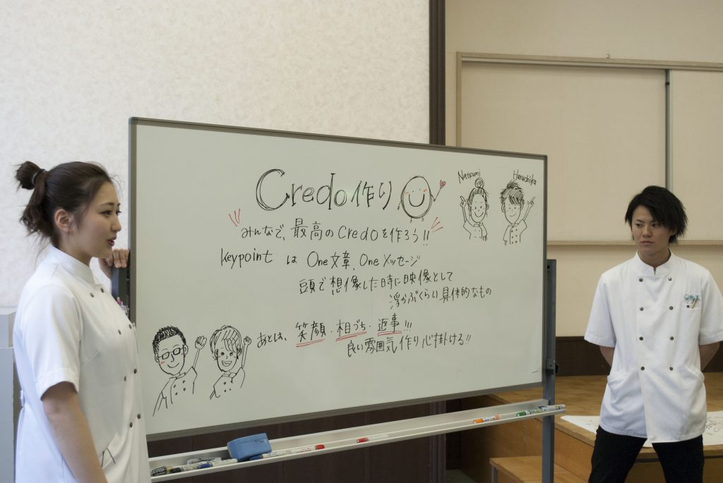 先日、新入生の宿泊オリエンテーション(郊外授業)が山梨県のエバーグリーン富士にて行われました。将来の夢に向かって目標をしっかりと定めてもらう為に、各科3日間にわたりクラスでグループワークを行なった上で行動指針(クレド)を作成し発表しました。参加した1年生にインタビューしてみると「クラスでいろいろな意見を出し合う中で、意見が合わない時もありましたが、たくさん話し合って、自分たちの最高のクレドをつくることができました。