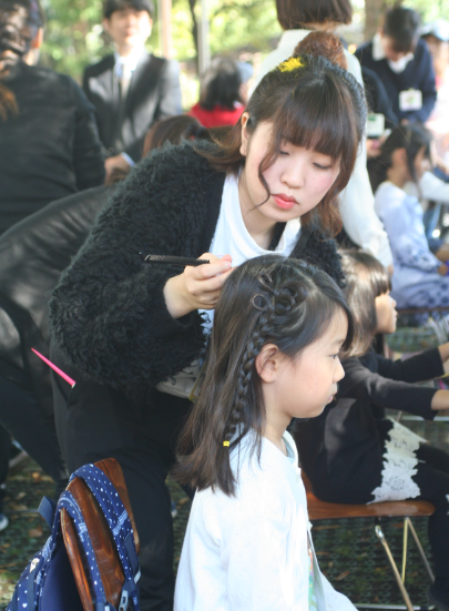 先日、日暮里南公園にて青空こどもまつりが行なわれました。本校の美容科・理容科・ビジネス美容科がブースを担当させていただきました。美容科・理容科では、ヘアアレンジとカラースプレーを使って星形やハート型のヘアカラーを楽しんでもらいました。また、ビジネス美容科ではハンドマッサージを体験して頂きました。学生達も初めは緊張していましたが、皆様の笑顔や暖かいお言葉で緊張がほぐれ、持っている力を全て出し切って精一杯施術を行うことが出来ました。施術を楽しみにして来てくださった地域の皆様にはとても喜んでいただけました。このような技術提供を行なうイベントは学校でも行なっています。特に12/3・12/4の【美翔祭】ではヘアアレンジやマッサージなどさまざまな体験がございますので、今回の施術で喜んでいただけたお客様はもちろん、今回参加できなかった方も是非ご参加下さい。より技術力と接客力を磨き皆様をお待ちしております。