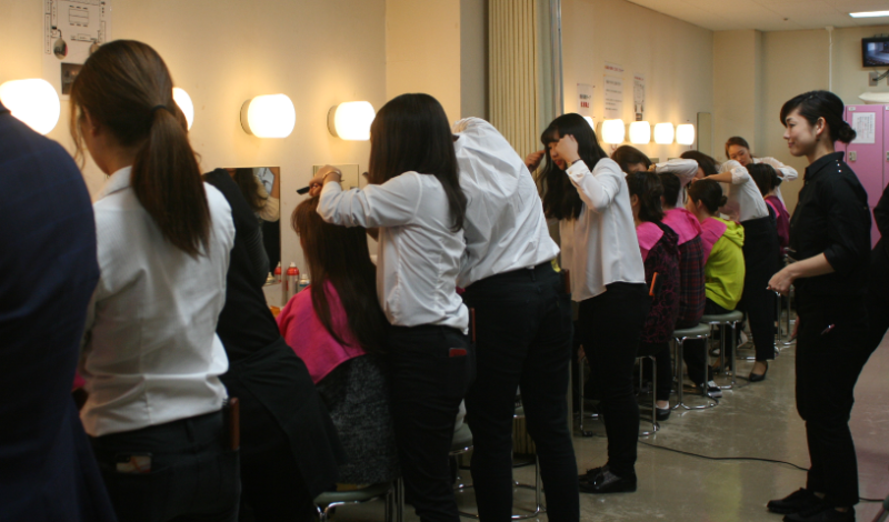 先日、ホテルラングウッド内にあるサニーホールにて行なわれた【日暮里コレクション】に本校学生(美容科、ビューティアーティスト科)が参加致しました。当日は日暮里コレクションに参加するモデルのヘアメイクを担当しました。学生の様子を見ると自分の技術に自信を持って堂々と施術を行なっていました。また、モデルさんが退屈しないように会話を弾ませる学生も見られました。この様子を見るとビューティ産業で働く為に必要な接客力が普段の学校での教育でしっかり身についているのだと感じました。今回の体験を通してお客様へ技術を提供する難しさや楽しさだけでなく、自分の技術をお客様がどのように感じているのかを知る貴重な機会になったことでしょう。今後もKOKUSAIでは地域の皆様と連携して地域貢献ができるよう指導を行なっていきます。
