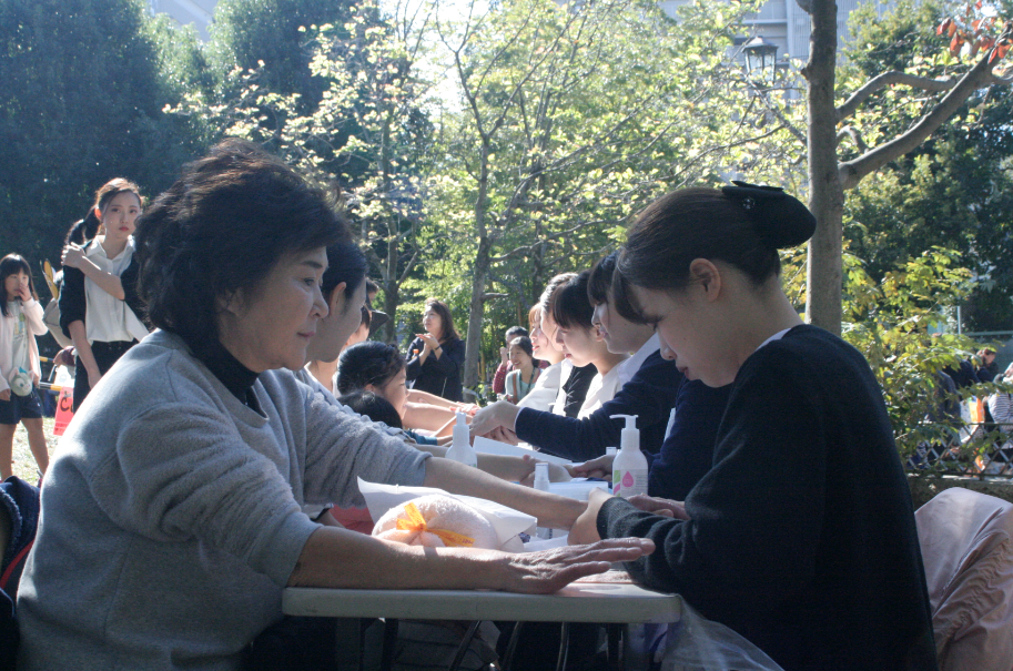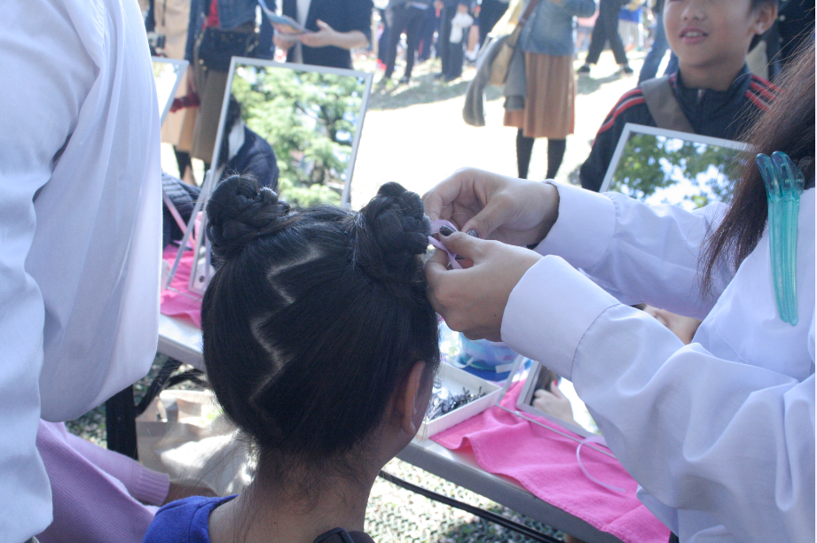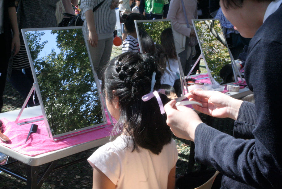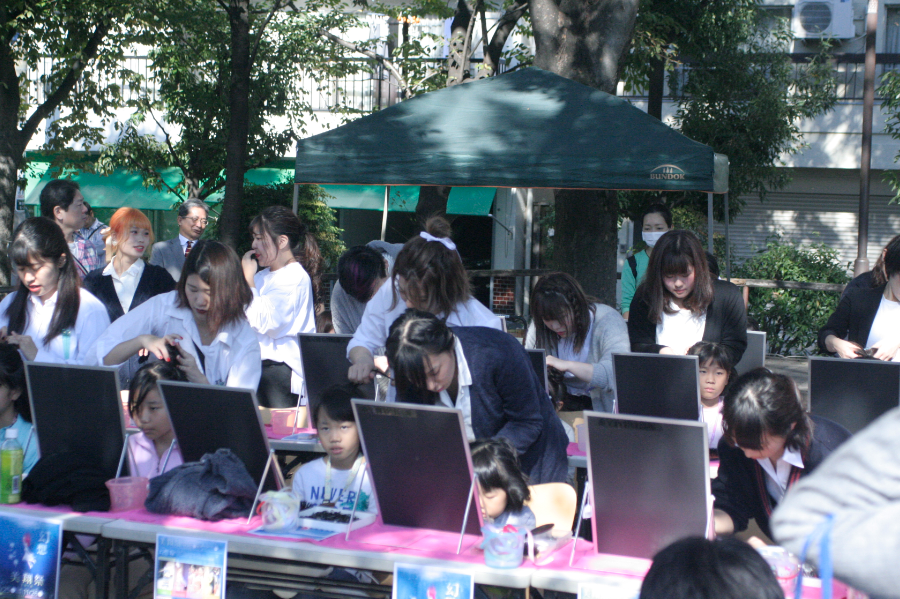 11月3日(土)日暮里南公園にて「第29回 にっぽり青空こどもまつり」が開催されました。毎年、荒川区が主催しているこのイベントは、世代間の交流を深め、地域に愛着と誇りを持ち、より良い地域社会の形成を目的としており、親子で参加される方が多いイベントです。その中で美容科、理容科、ビジネス美容科の学生が技術体験ブースを担当させて頂きました。