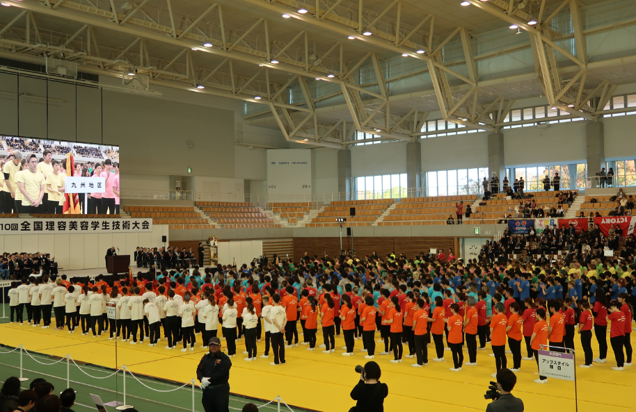 11月18日 『第10回全国理容美容学生技術大会』 が、岡山県総合グラウンド体育館にて開催されました。この大会は、全国の理容・美容学生の技術の向上を目指すための場および理容・美容学校の素晴らしさを啓発する場として、日本理容美容教育センター(公益社団法人)が理容美容合同で開催する全国規模の大会です。