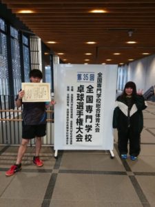 全国専門学校体育連盟と全国専門学校卓球連盟が主催する、全国専門学校卓球選手権大会に学生2名が出場致しました。