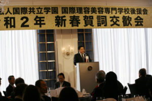 ホテルニューオータニ鳳凰の間にて、本校の後援会が主催する令和2年新春賀詞交歓会が開催されました。後援会会長の伊藤様のご挨拶に始まり、本校理事長・校長である和田美義からはご参加していただいた方々への謝意と学園としての抱負、また今年開校する国際共立学園高等専修学校について紹介すると同時にご挨拶させていただきました。