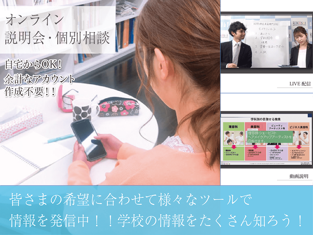 スマホがあればどこでも観れる、オンライン説明会を実施致します! 内容と致しましては、学校説明・学費・入試...などなど本校についてお話し致します。 お家で簡単に見ることが出来るので、この機会に是非ご参加ください! ※下記の「場所 新館」は撮影場所になりますので、参加者の皆さまはご自宅(お好きな場所)でご覧ください。 こちらにお申込みしていただいた方には、後日メールで詳細をお送り致します。 info@kokusai-kyouritsu.ac.jpより送らせていただきますので、 メールが届きますよう必ず本校アドレスのご登録をお願い致します。 |