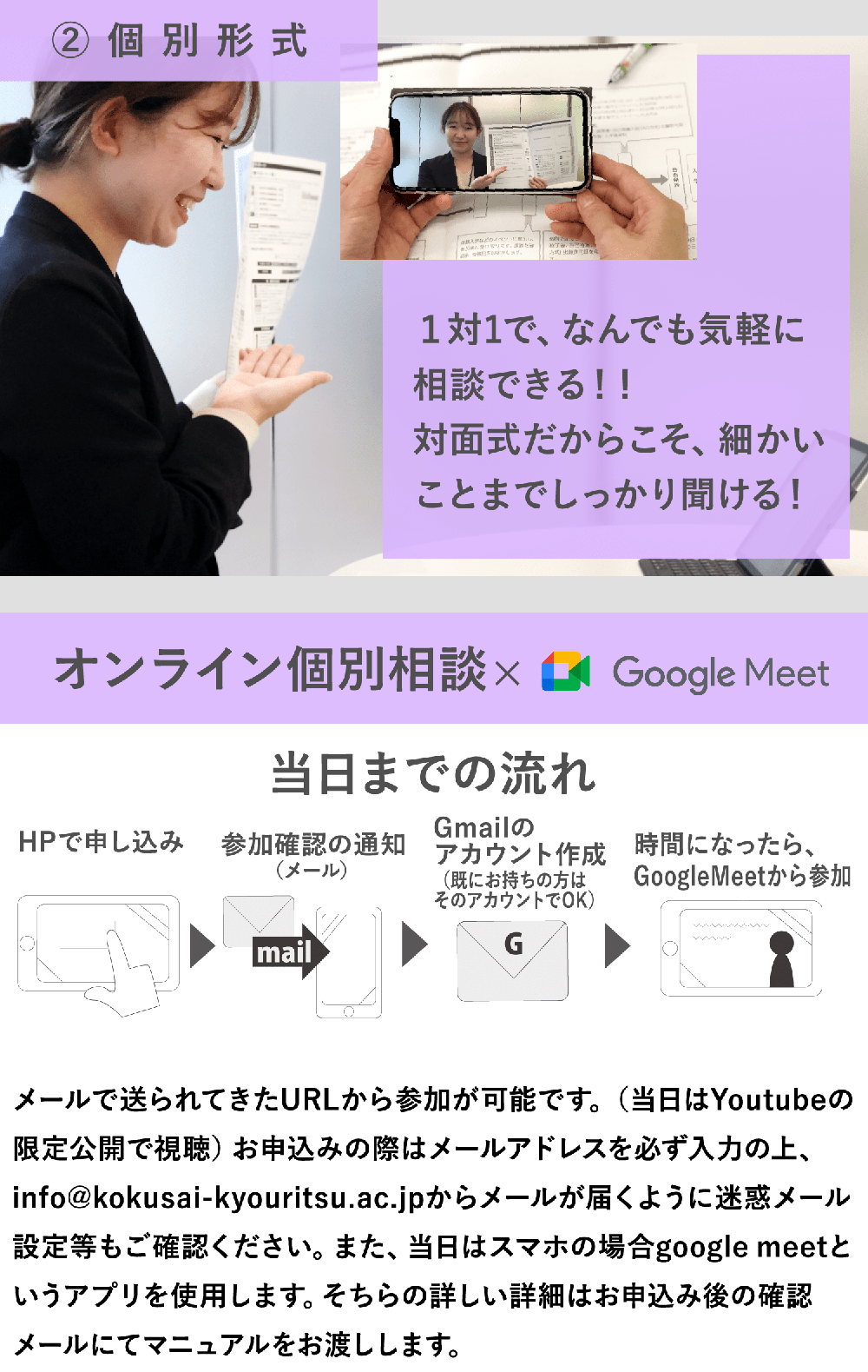 選べる、2種類の参加方法 もっと気軽に相談したい 相談の方法は簡単!! 【STEP 1】 国際の公式LINEを下記のボタンからフォロー! 【STEP 2】 お友達登録ができたら、トーク画面よりなんでも質問してください♪ その他、電話・メールでの相談も 受け付けております。