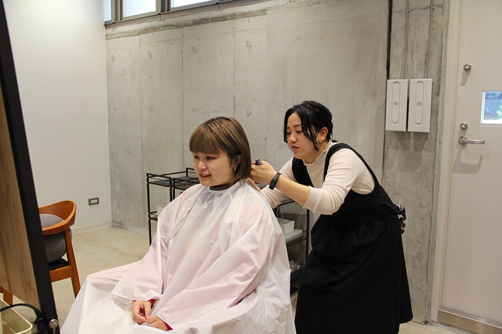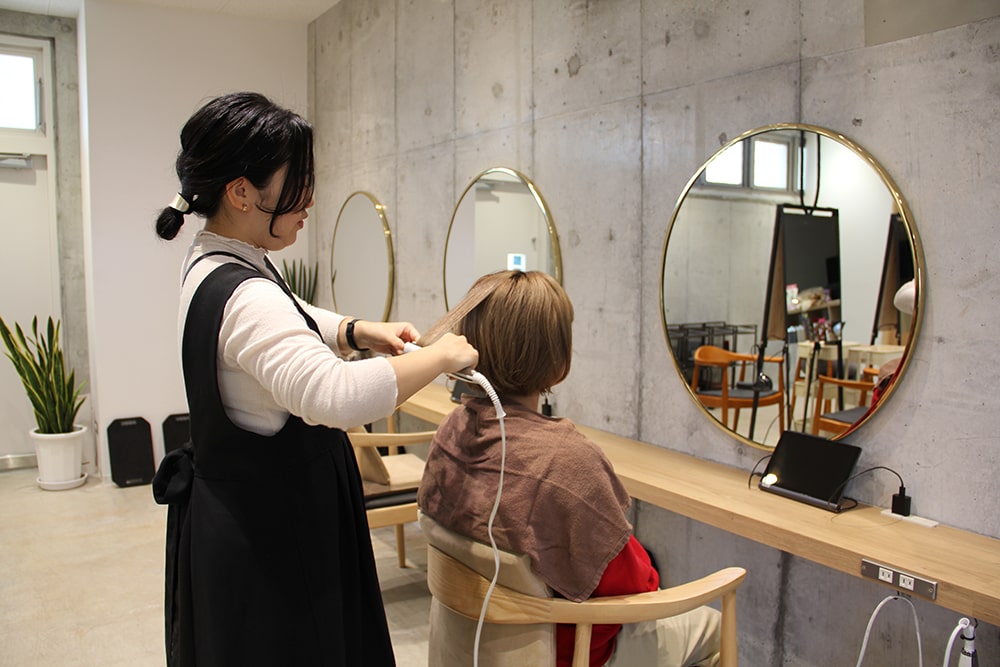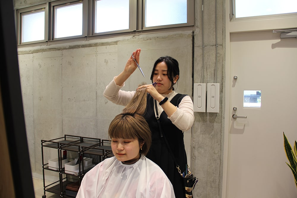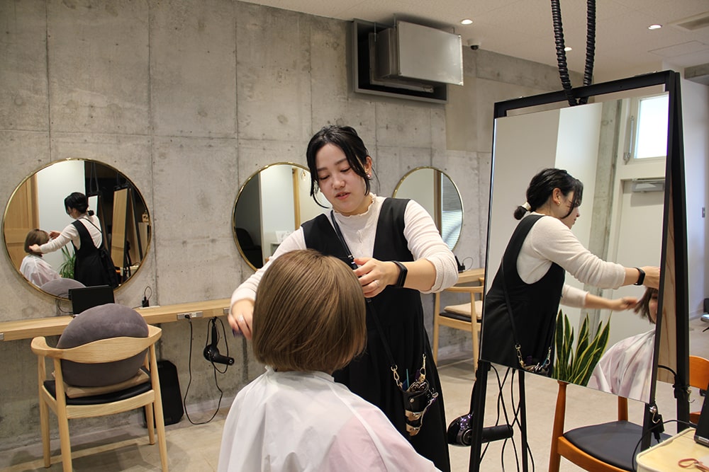 最初はヘアメイクに憧れてこの業界を目指しました。仕事をしている中で、お客様への接客と、芸能人へのヘアメイクとでは違った職業であると感じます。美容師として働く中でも和装などのヘアメイクの施術ができる店舗があることを知り、この業界へ進みたいと考えました。