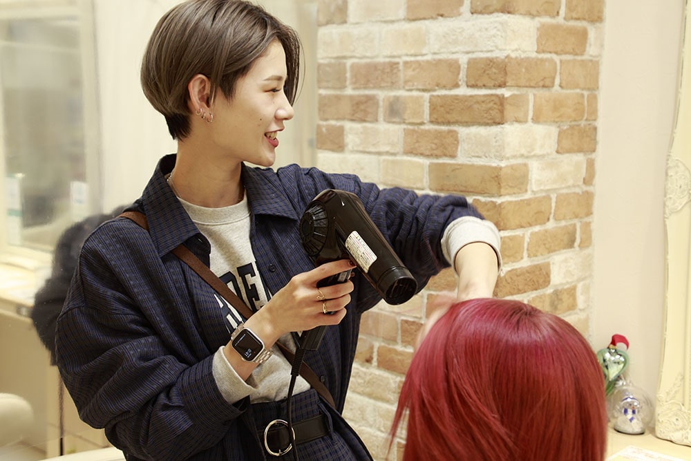小さい時から美容師が大好きで、可愛くしてくれたり、すごく楽しませてくれたり、他のお客様からも沢山愛されて、こんなに幸せな気持ちにする事ができる仕事っていいなぁ。と思ったのがきっかけでした。私もみんなを幸せな気持ちにさせたい!この人に会いたい!って思ってもらえるような美容師になりたい!と思いました。