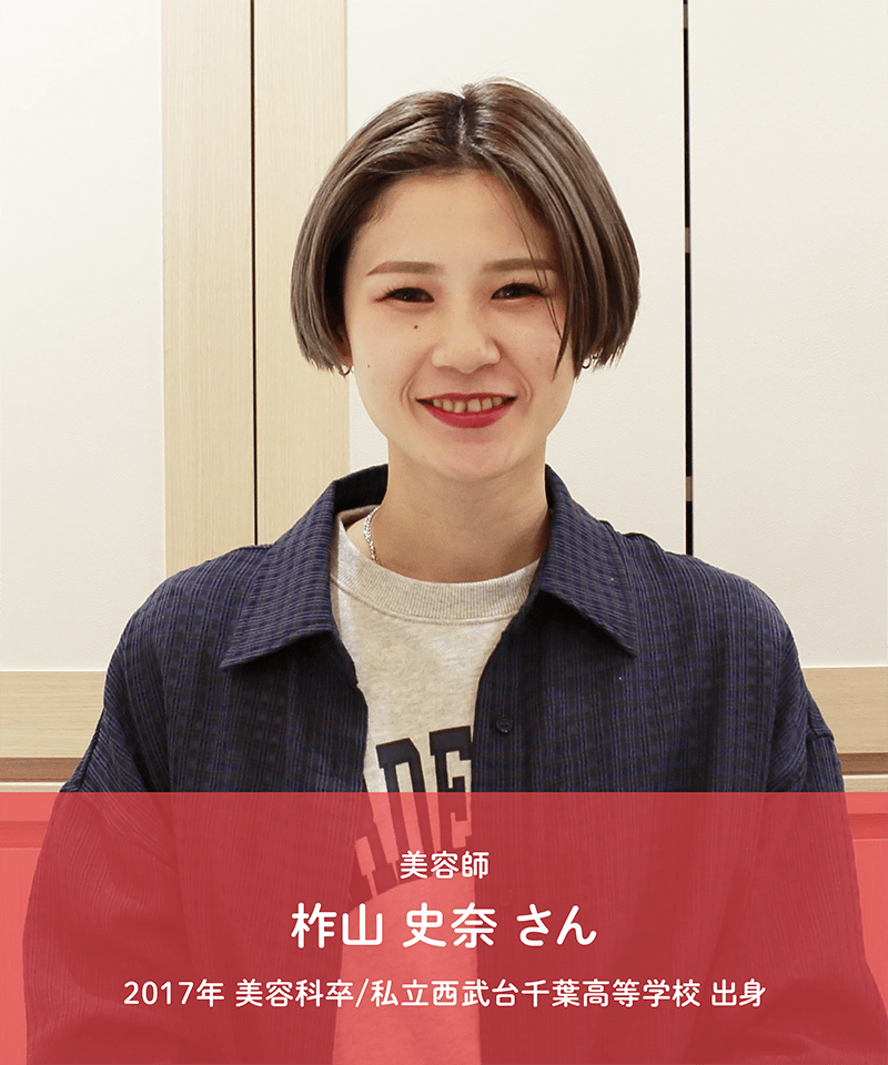 まずは躾という教育理念に惹かれたからです。挨拶や礼儀は当たり前のことかもしれませんが1番大事なことを毎日教えてくださっていたんだなと感じました。あとは授業内容が社会に出てからも役に立つと感じたからです。美容師免許を取るための国家試験に向けた授業はもちろんですが、それだけではなく働いてからも役に立つ授業内容ばかりで、働き始めてびっくりしてしまいました(笑)例えば、KOKUSAIはシャンプーの授業をバックシャンプーとサイドシャンプーという形が異なるシャンプー台の両方を習いますが、2つとも授業でやっている美容学校は少ないらしく、働き始めて先輩や店長から驚かれました!カットも授業でやっていた事が活かされてサロンでのカットの試験も進みが早かったのはよかったなと思いました。