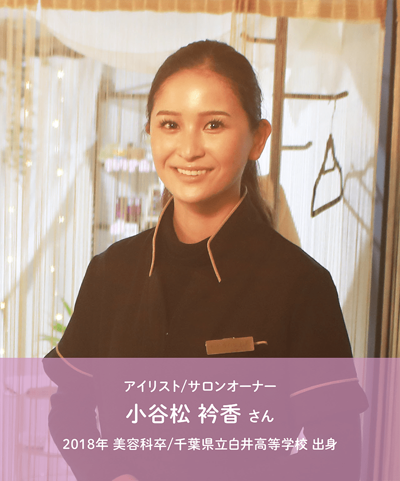 アイリストに限らず就職活動も進路研究もそうですが、色んなところを実際に見たうえで比較をした方が良いと思います。私は、アイリストになって自分のお店をずっと持ちたいという夢があったので、学校を卒業後はいろんなサロンを見学して回り、独立に有利なサロンを選びました。進路研究にも同じことが言えて、自分のやりたいことや夢を叶えられる学校はどこだろう?と、沢山比較した上で学校や職種を決めることをオススメします。