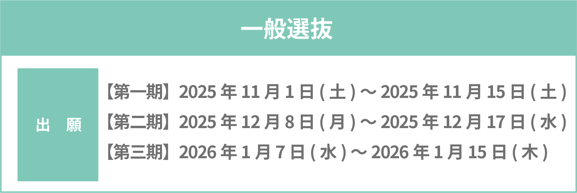 ・出願の方は調査書、推薦書など発行に時間のかかる書類をあらかじめ準備しておいてください。